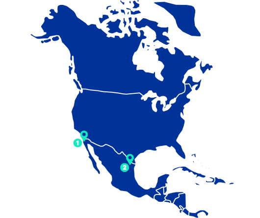 Located in Tijuana, Baja California (1) and Monterrey, Nuevo León (2), our convenient proximity to the US allows for a quick 2.5-hour drive by car.